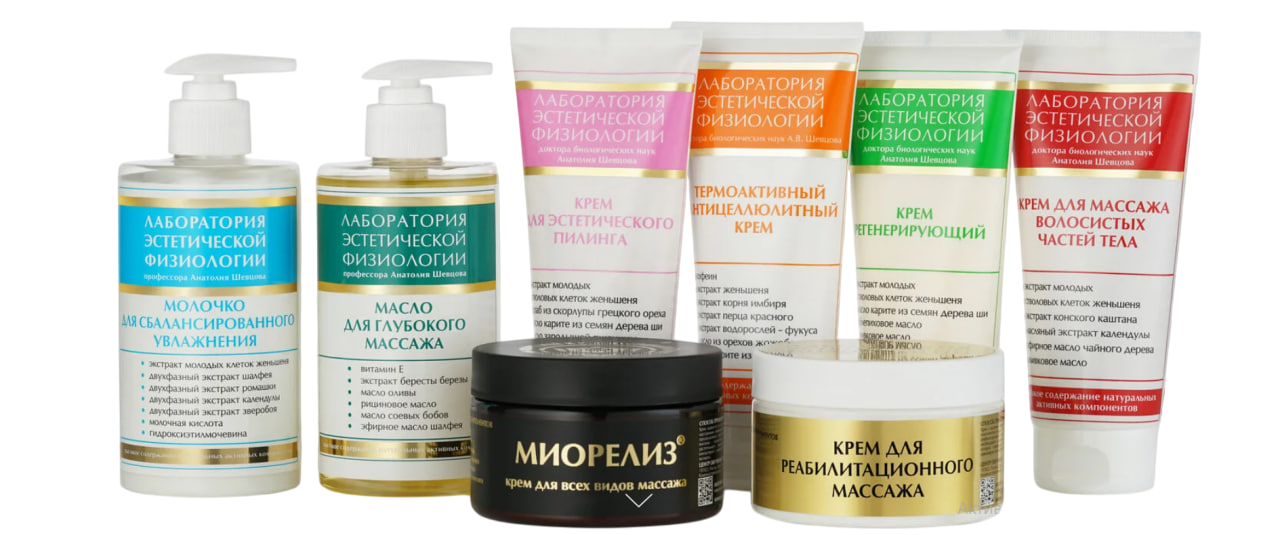 Мы используем исключительно профессиональную косметику, уникальной рецептуры профессора Шевцова, основателя «Лаборатории эстетической физиологии». Косметика, разработанная на синтезе современных научных открытий и лучших природных компонентов, создана как для профессиональной работы массажистов, реабилитологов, косметологов, так и для ухода за кожей в повседневной жизни.
